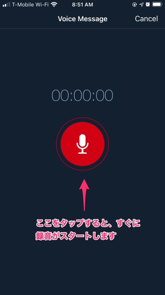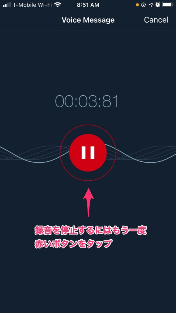 4.録音してみましょう!赤いボタンをタップすると直ちに録音がスタートします