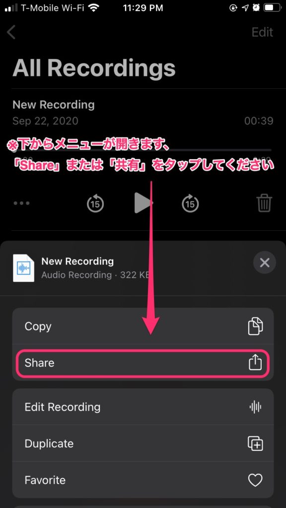 <ボイスメモから送る〜iPhoneの方>