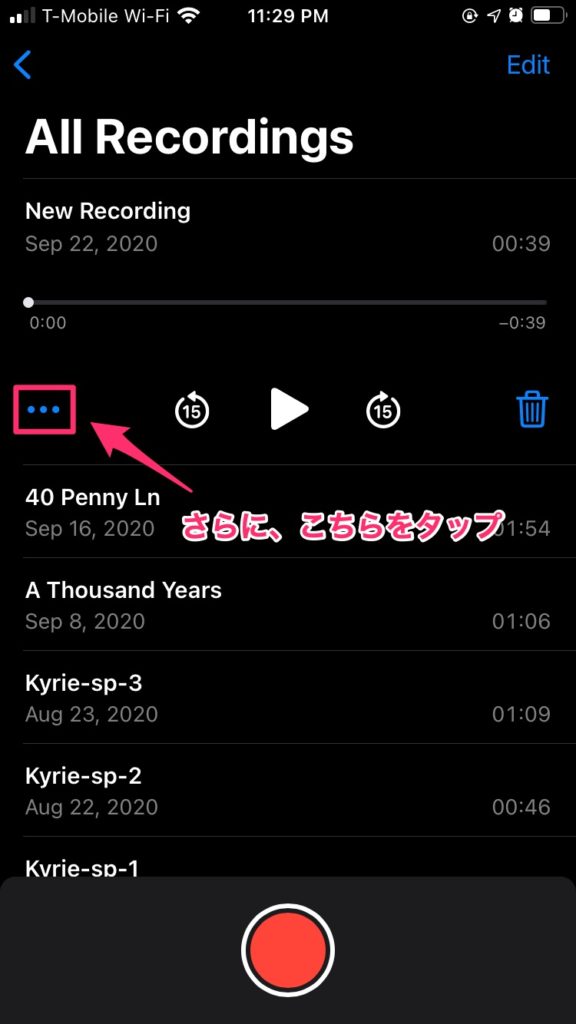 5.もう一度赤いボタンをタップすると、録音が終了します